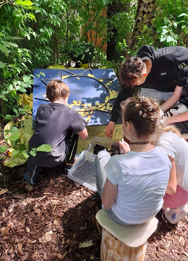 Natürlich schafften wir nicht alle Stationen, aber ein paar schon. Es gab eine Station zum Tod von Jesus. Hier dachten wir an einen geliebten Menschen, der uns fehlt, weil er gestorben ist. An einer anderen Station ging es um die Hoffnung. Was lässt uns hoffen, dass wir auch wieder aufstehen können? Hier notierten wir auf Mosaiksteinen, was Hoffnung für uns persönlich heißt. Und was sagte Jesus seinen Freunden als sie verzweifelt waren? Welchen Auftrag gab er Maria Magdalena? Was sollten sie tun, damit sie wieder Hoffnung schöpfen konnten? Wie spricht mich Jesus an? Und was könnte meine Aufgabe im Alltag sein? Dabei schauten wir in einen Spiegel. Wir schauten uns selbst genau an.