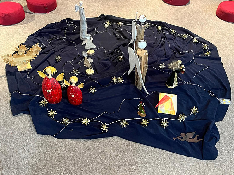 Am Freitag, 4.12. ging es in Frau Jorgas Frühschicht um die vier Kerzen des Adventskranzes, die in der Geschichte nicht mehr brennen wollten, weil sie zu wenig Beachtung fanden, bis ein Kind das erkannte und sie alle wieder anzündete. Es ging auch um Engel auf Erden, um Boten von Freundschaft, Nächstenliebe und Geborgenheit. Wusstet ihr, dass in der Bibel 266 Engel genannt werden? Einen für jeden Tag, sogar im Schaltjahr. Ein schöner Gedanke, der uns zuversichtlich stimmen sollte in dieser von Krisen stark belasteten Zeit.
