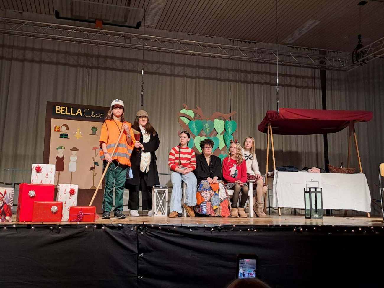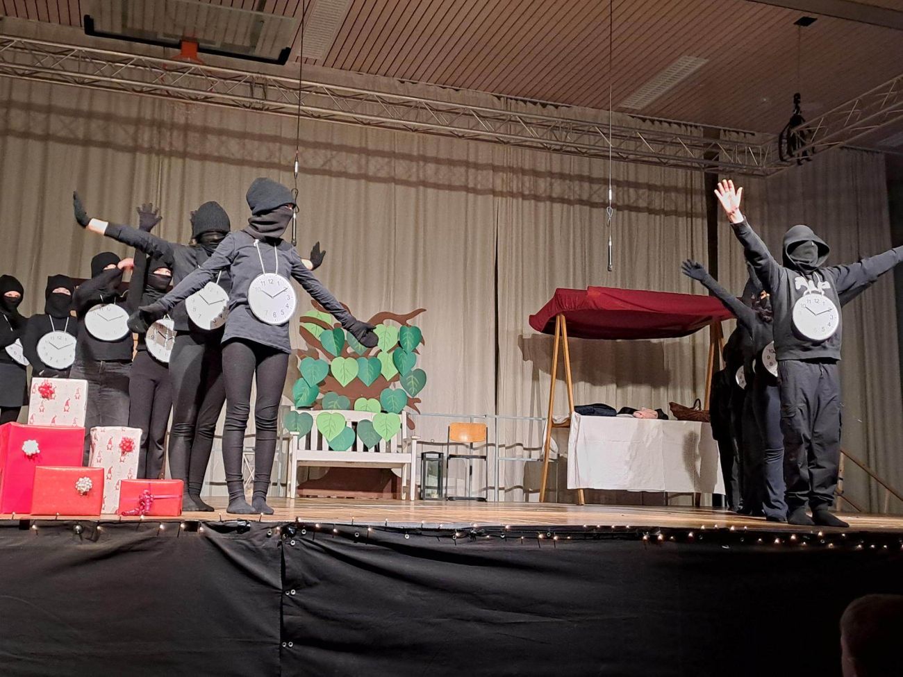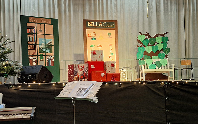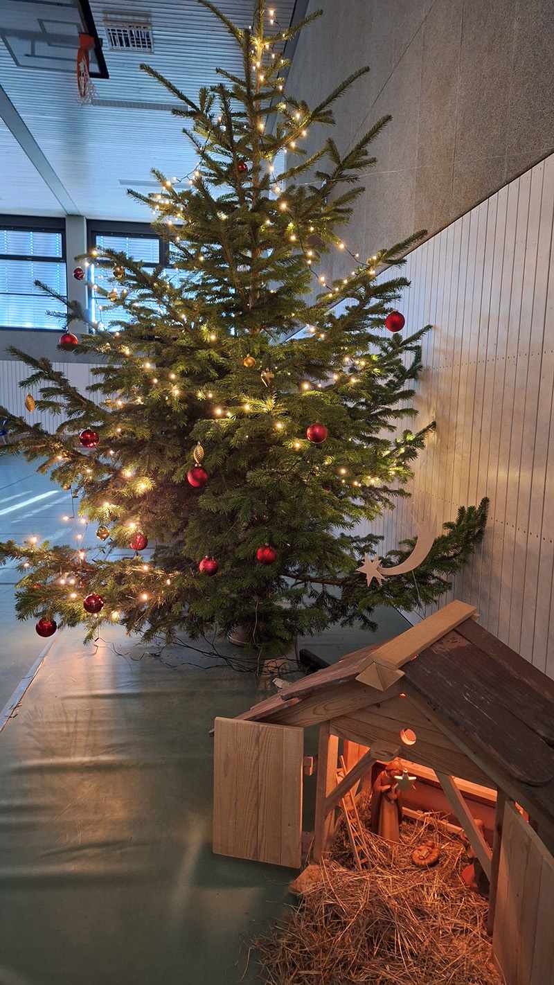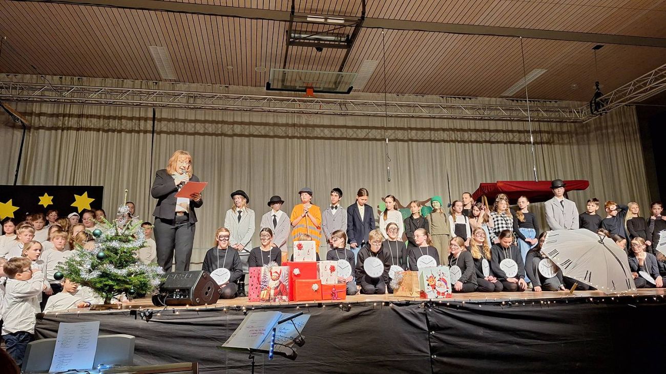 Bei der diesjährigen Weihnachtsfeier in unserer Turnhalle haben sich Schauspieler:innen und Musizierende wieder einmal übertroffen. In einer nachdenklichen Geschichte über "Momo und die gestohlene Zeit" wurde die vermeintlich besinnliche Vorweihnachtszeit aus einem anderen Blickwinkel betrachtet.