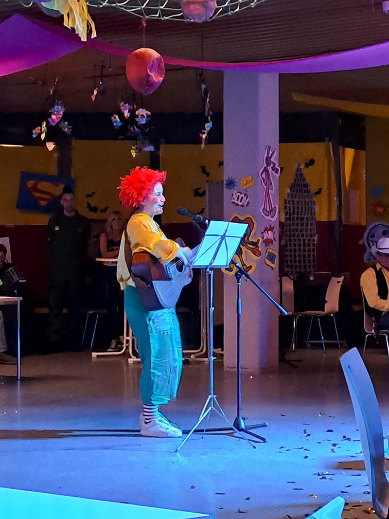 Los ging's mit einer lustigen Stand-up-Comedy einiger Kolleg:innen, die das Geschehen im Threema-Chat des Kollegiums auf die Schippe nahmen. Ein amüsanter Kirchenbesuch unseres Hausmeisters Jürgen Schuler und seiner Frau sorgte ebenfalls für zahlreiche Lachmomente und eine musikalische Hommage an die MKS von Fünftklässler-Mama Judith Aulich ließ das Publikum begeistert mitsingen und klatschen.