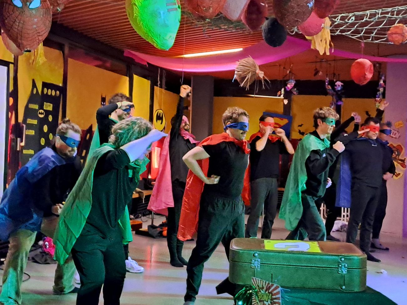 Höhepunkt des Abends war jedoch der Lehrertanz, für den sich wieder zahlreiche männliche Kollegen in wochenlanger Vorbereitung mit Frau Roos als Superhelden präsentierten. Tosender Applaus belohnte die MKS-Helden für ihren alljährlichen originellen Auftritt, den sie am Schmotzigen nochmals vor der ganzen Schulgemeinschaft aufführen.